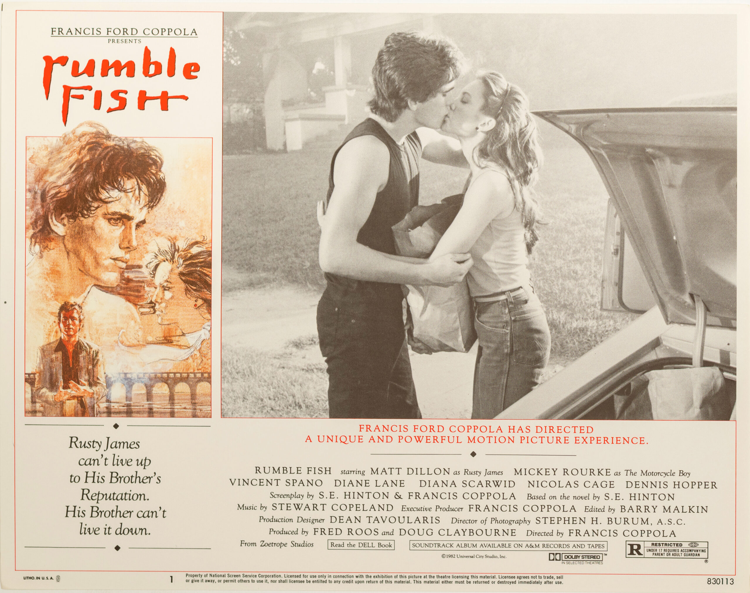 Features Matt Dillon as Rusty James and Diane Lane as Patty
