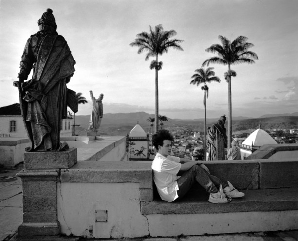 A contemplative Robert Smith of cult Goth band, The Cure, portrait, Brazil, March 1987.
