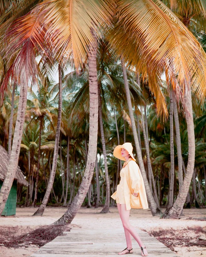 British fashion model Wenda Parkinson in Tobago, Vogue, 1956.